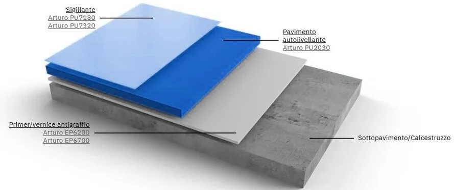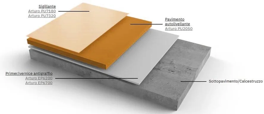 Arturo offre diversi sistemi di pavimentazioni autolivellanti in resina per l'industria, l'industria alimentare e delle bevande, garage,