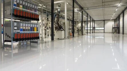 Sistema di pavimentazione epossidica autolivellante adatto a carichi pesanti. Disponibile in numerosi colori.